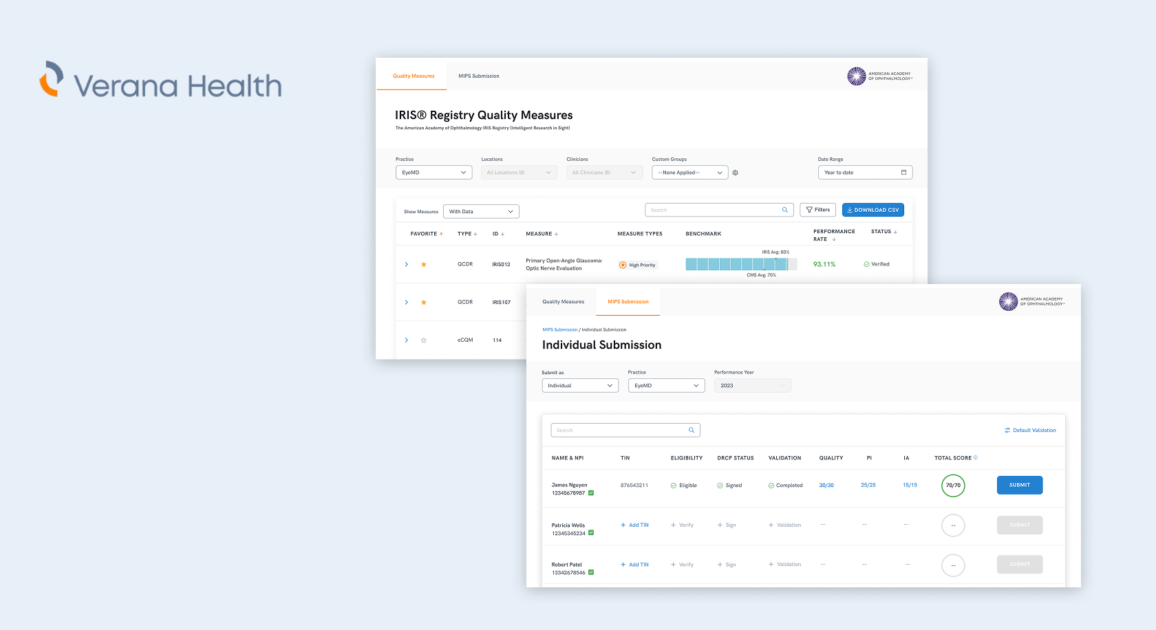 MIPS compliance is mandatory, high-stakes, and notoriously painful for practices to navigate. As the sole designer on Verana's Quality Measures team, redesigned the compliance dashboard and submission portal used by 3,000 clinicians, achieving a 90 NPS score at launch.